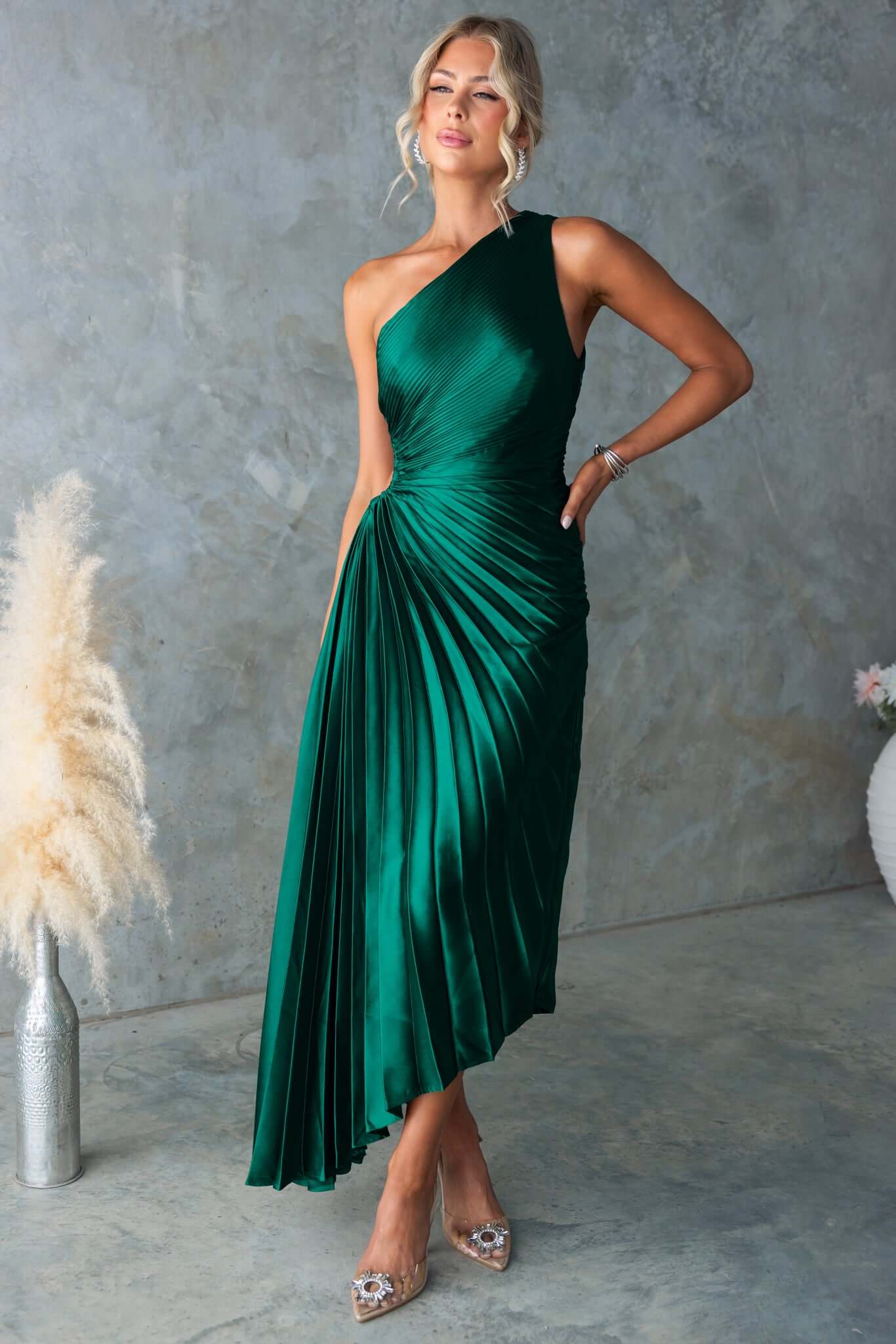 • One-shoulder neckline